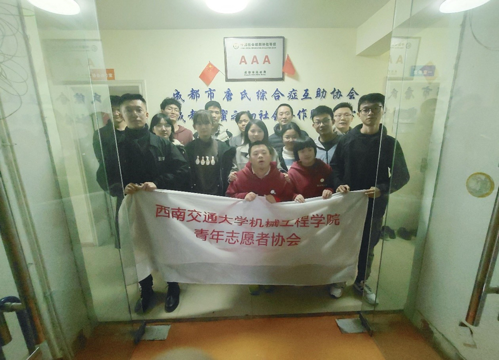11月21日,天游ty8线路1线路2检测中心团委副书记胡豪,天游ty8线路1线路2检测中心青年志愿者协会指导老师黄兆国共同引领机械青协志愿者来到成都市唐氏综合症互助协会中心,举行“天游ty8线路1线路2检测中心青年志愿者协会志愿服务基地”挂牌仪式。