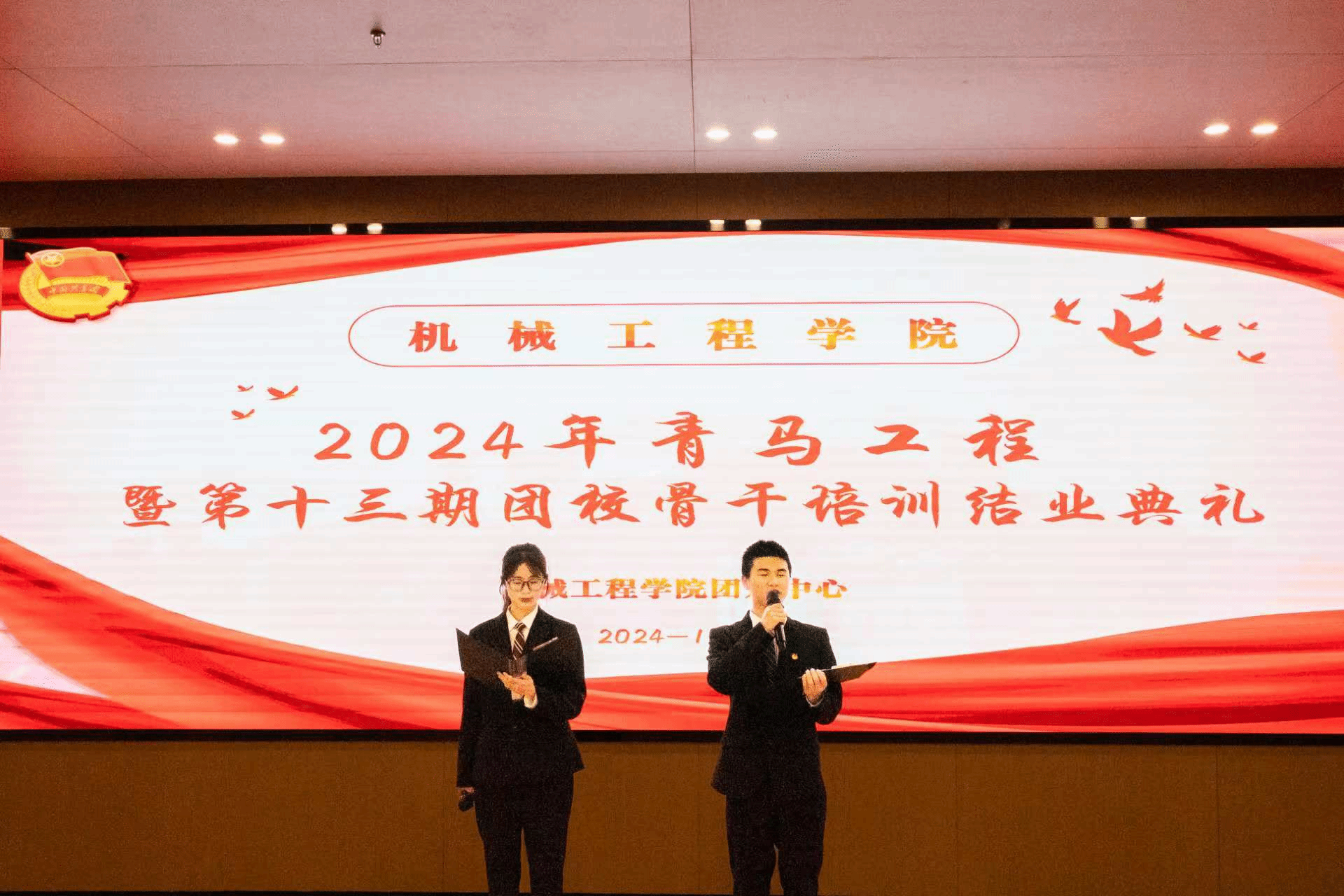 天游ty8线路1线路2检测中心青马工程暨第十三期团校骨干培训结业典礼于2024年12月9日在犀浦校区图书馆一号报告厅隆重举行。此次活动标志着历时53天团校骨干培训课程圆满结束。出席本次典礼的领导及嘉宾包括天游ty8线路1线路2检测中心团委书记何蕊芯、担任团校班主任的辅导员周瑾、曹佳伟、冯毅铭以及团建中心指导老师奉明明。